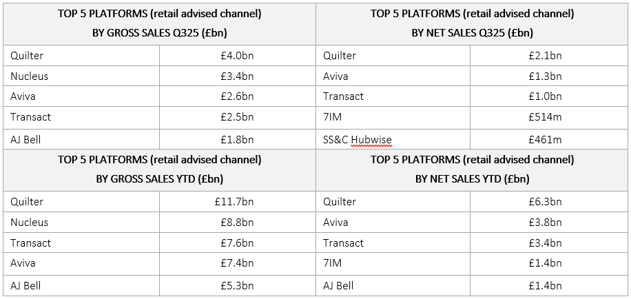 Adviser platforms had their strongest third quarter net sales figures since 2022 - hitting £756bn, according to new research.
