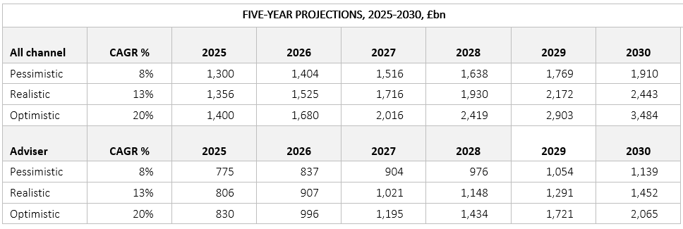 “On that basis, Fundscape projects that all-channel assets will hit £2.4trn and adviser assets will double to £1.5trn by 2030.”