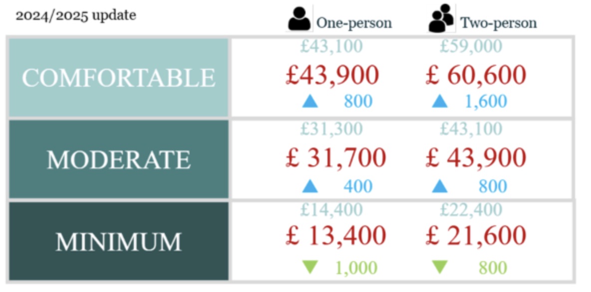 The minimum amount a couiple needs in retirement has fallen by £1,000, according to the latest update of the Pensions and Lifetime Savings Association’s (PLSA) Retirement Living Standards report.