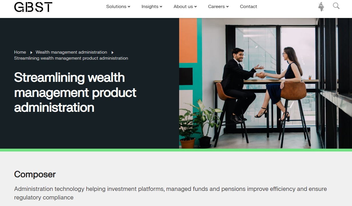 GBST’s cloud-based Composer wealth and administration platform is designed to streamline investment, pension and annuity management for financial services firms. GBST claims that around £210bn of assets are managed on Composer.