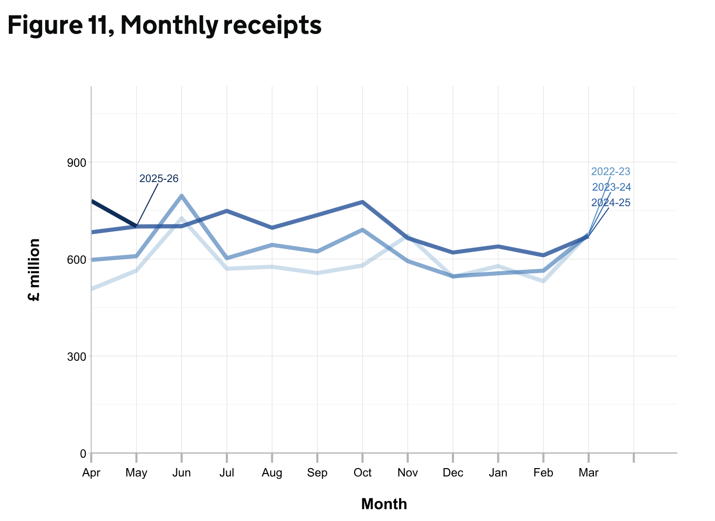 Figure 11 above (source: HMRC) contains the monthly receipts patterns in each financial year since 2022 to 2023 and shows higher receipts from March 2022 are expected to be due to a combination of higher volumes of wealth transfers following recent liable deaths, recent rises in asset values, and the government’s March 2021 and Autumn 2022 decisions to maintain the tax free thresholds at their 2020 to 2021 levels up to and including 2029 to 2030.