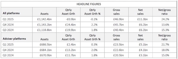 Despite market turmoil in recent times, platforms enjoyed their best net sales for 3 years in Q1, according to platform consultant Fundscape.