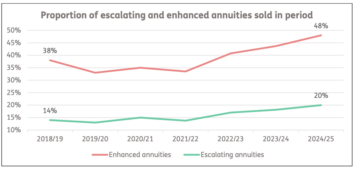 Sales of escalating Guaranteed Income for Life annuities that have some inflation protection, accounted for a fifth of all sales in 2024/25 and have increased by 17% year-on-year.