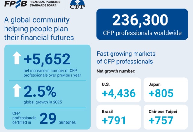 The number of Certified Financial Planners around the world reached a record 236,300 in 2025, up 5,652 year on year - a growth rate of 2.5%.